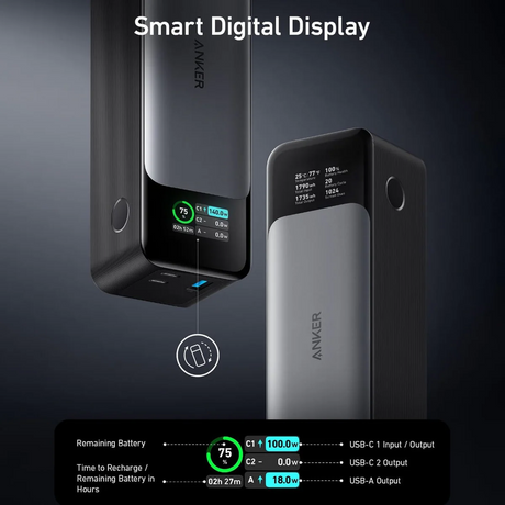 Anker Zolo Power Bank (25K, 165W, Built-In and Retractable Cables) – A1695
